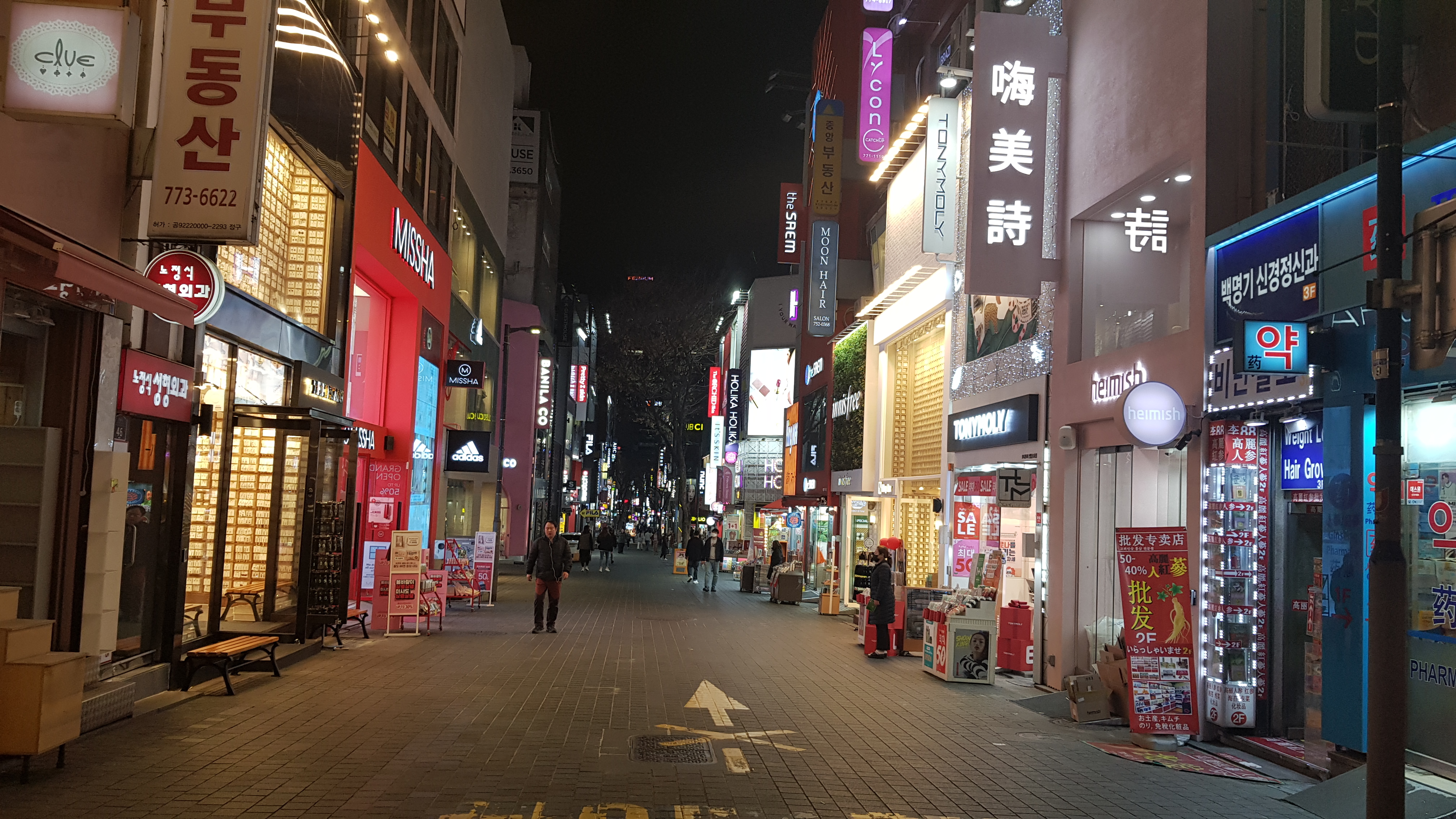 사람들로 북적거리던 명동거리는 환하게 빛나는 가게들의 음악소리만