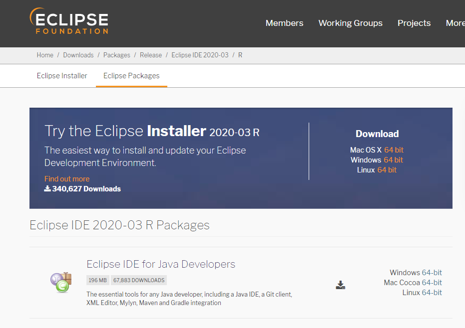 Eclipse Packages | The Eclipse Foundation - home to a global community, the Eclipse IDE, Jakarta EE and over 350 open source pro