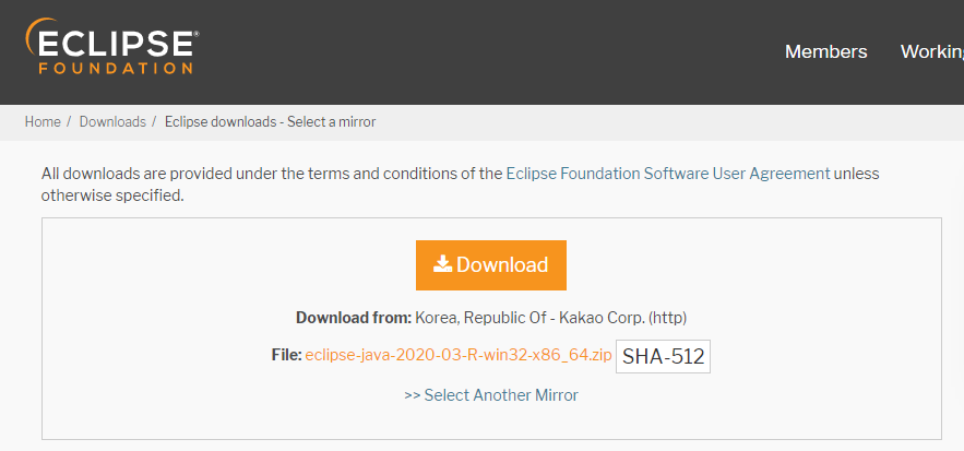 이클립스를 다운 받기 위해서는 우선 이클립스 공식 사이트로 이동해야합니다. 이클립스 공식 사이트는 아래와 같습니다.
