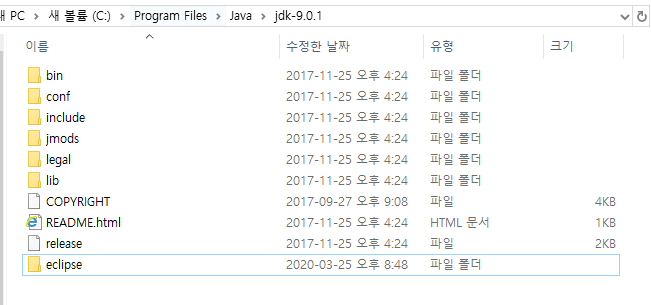 이클립스 파일을 jdk가 설치된 파일로 이동합니다.