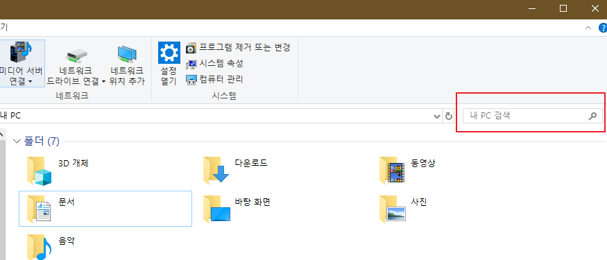 1. 내 PC 클릭 후 오른쪽 상단 탭 확인