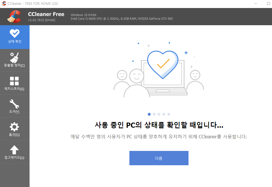 해결하기 버튼을 누르면, CCleaner로 PC최적화를 진행해줍니다.