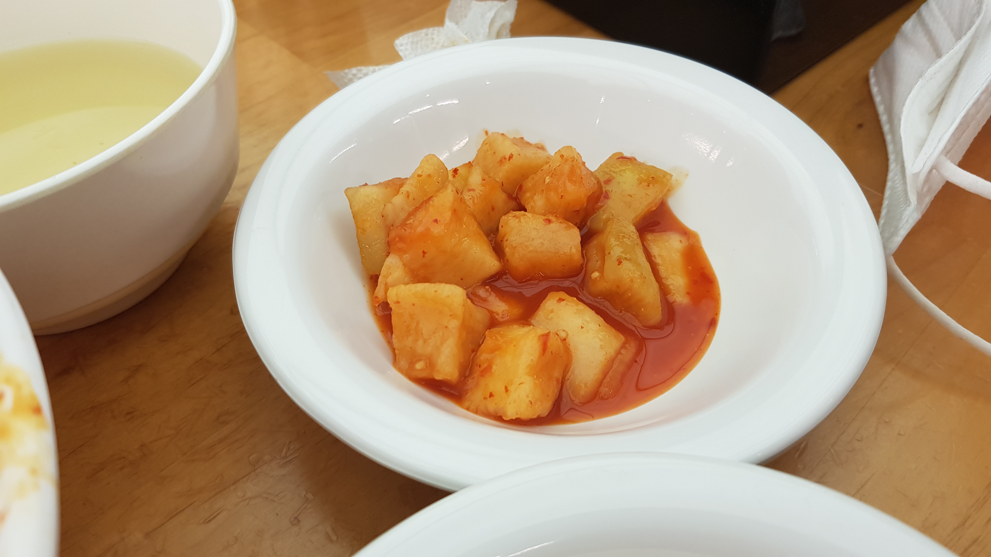 이 깍두기였습니다. 잘 익은 깍두기가 얼마나 맛있어질 수 있는지 알 수가 있었어요. 식욕을 살려주는 깍두기 덕분에 칼국수를 더욱 맛있게 먹을 수 있었어요.