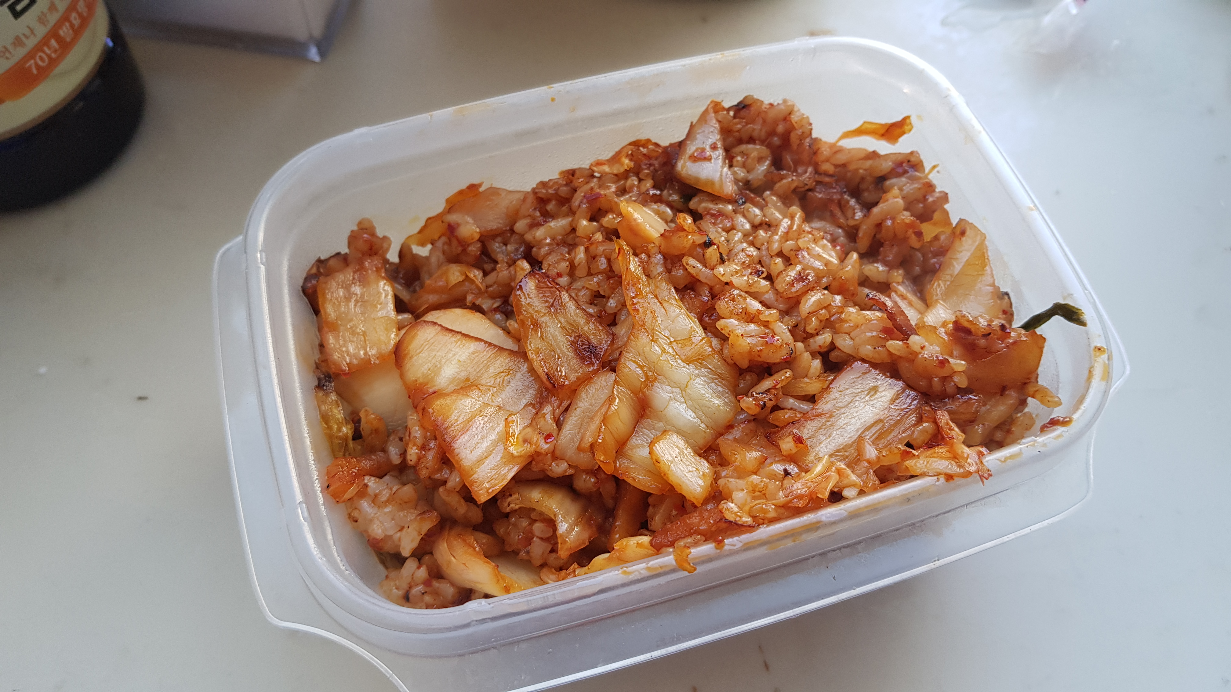 두번째 이유는 도시락으로 가지고 오기 매우 간편했기 때문입니다. 밥과 반찬을 함께 챙겨와야하는 다른 메뉴들에 비해 김치볶음밥은 도시락 통에 김치볶음밥만 담으면 되기 때문에 도시락으로 가져오기 아주 간편한 메뉴이죠. 만들기에도 아주 쉽습니다. 김치와 대파, 스팸만 있으면 5분안에 만들 수 있어요. 1인가구에게 강추할만한 도시락 메뉴입니다.