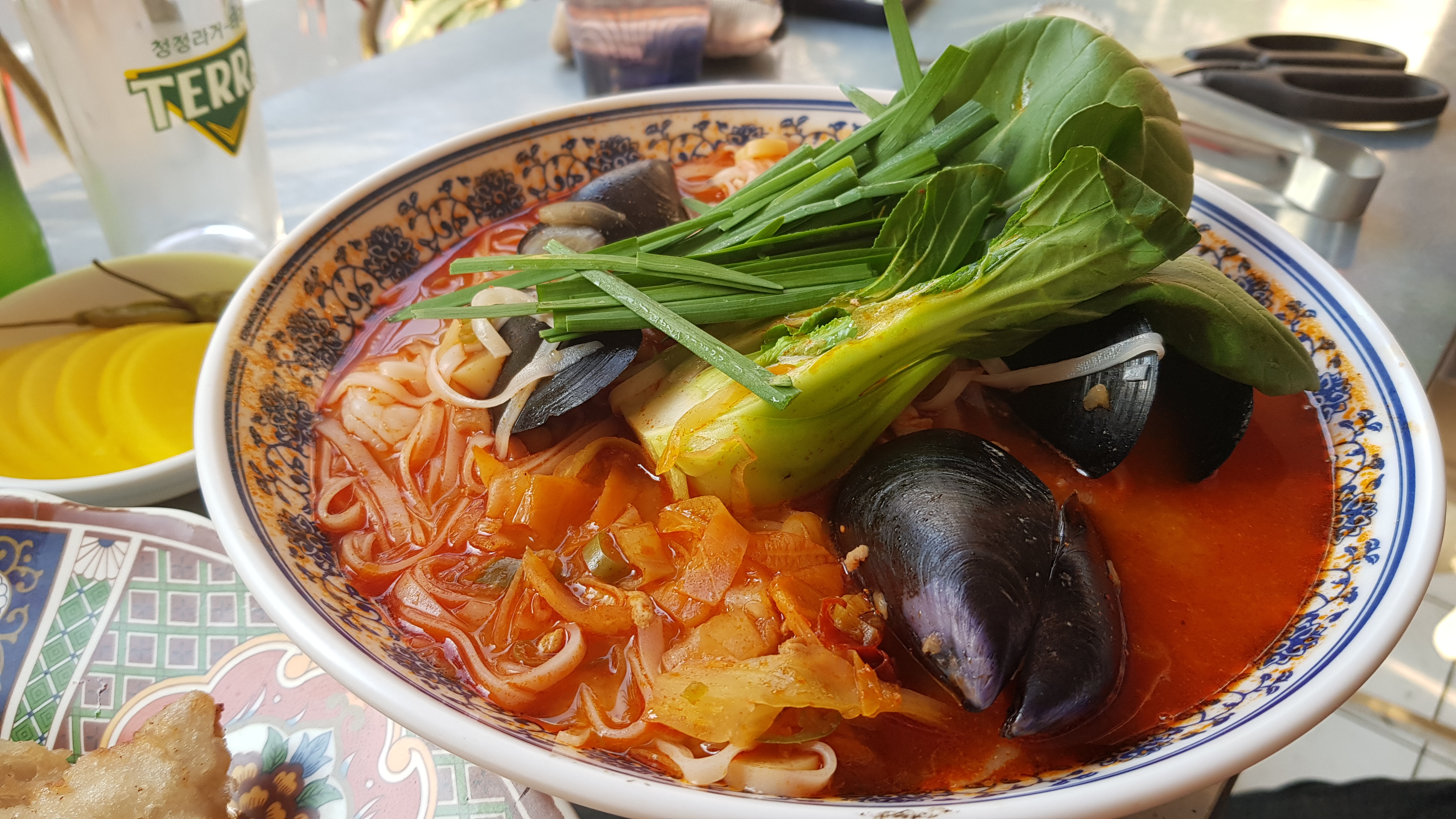 새벽달의 대표메뉴래요. 면은 쌀국수 면과 비슷한 느낌의 면이였고, 국물은 이 세상 짬뽕들 중에 제일 맛있었어요. 제가 이제까지 먹어온 짬뽕들중 넘버원이였습니다. 국물 맛이 정말 일품이고 예술이였습니다. 왜 이곳에 오면 꼭 사천짬뽕을 먹어야한다고 하는지, 이유를 알수가 있었어요.