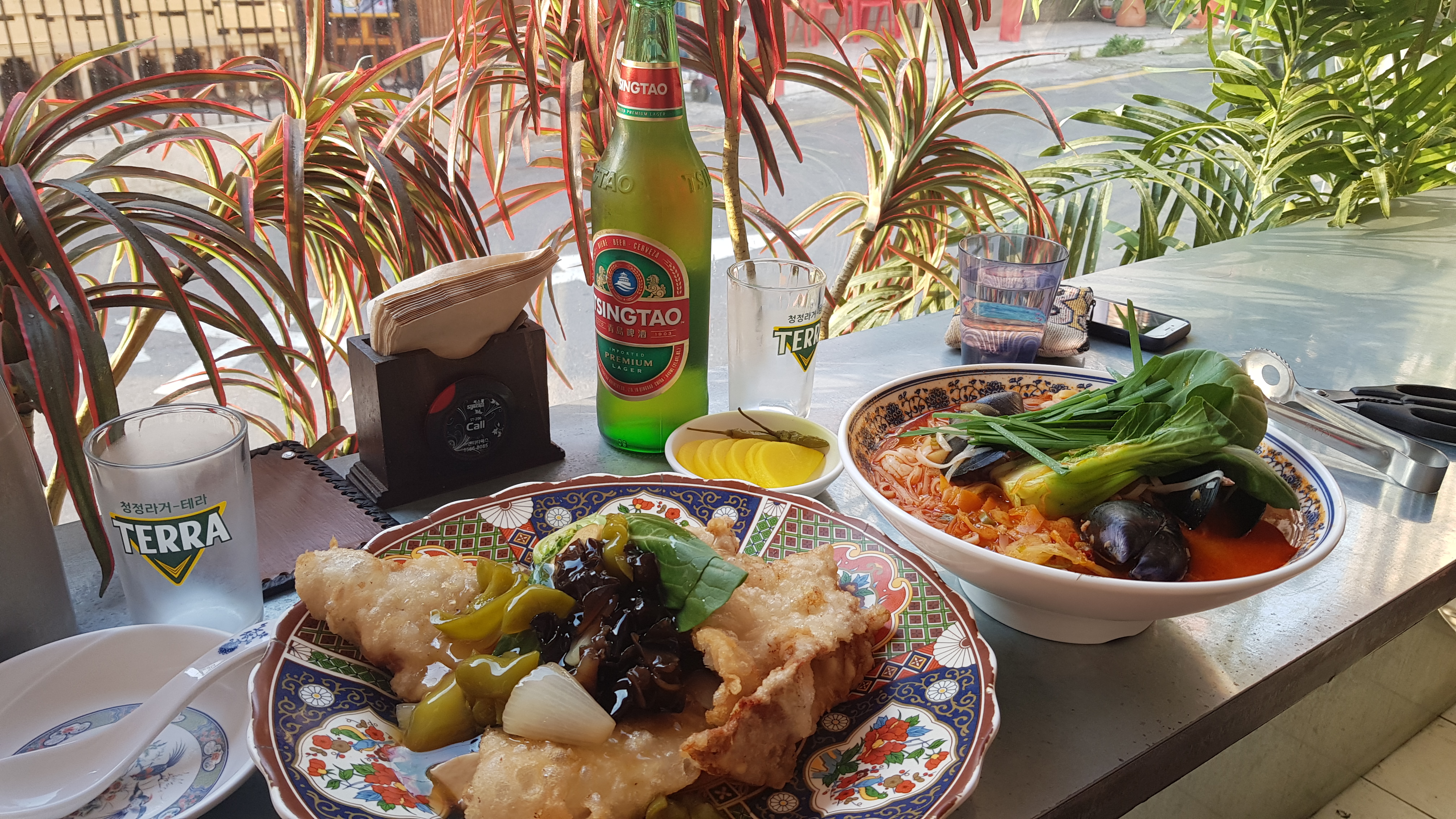 시원한 칭타오와 잘 어울리는 촉촉바삭한 궈바로우,