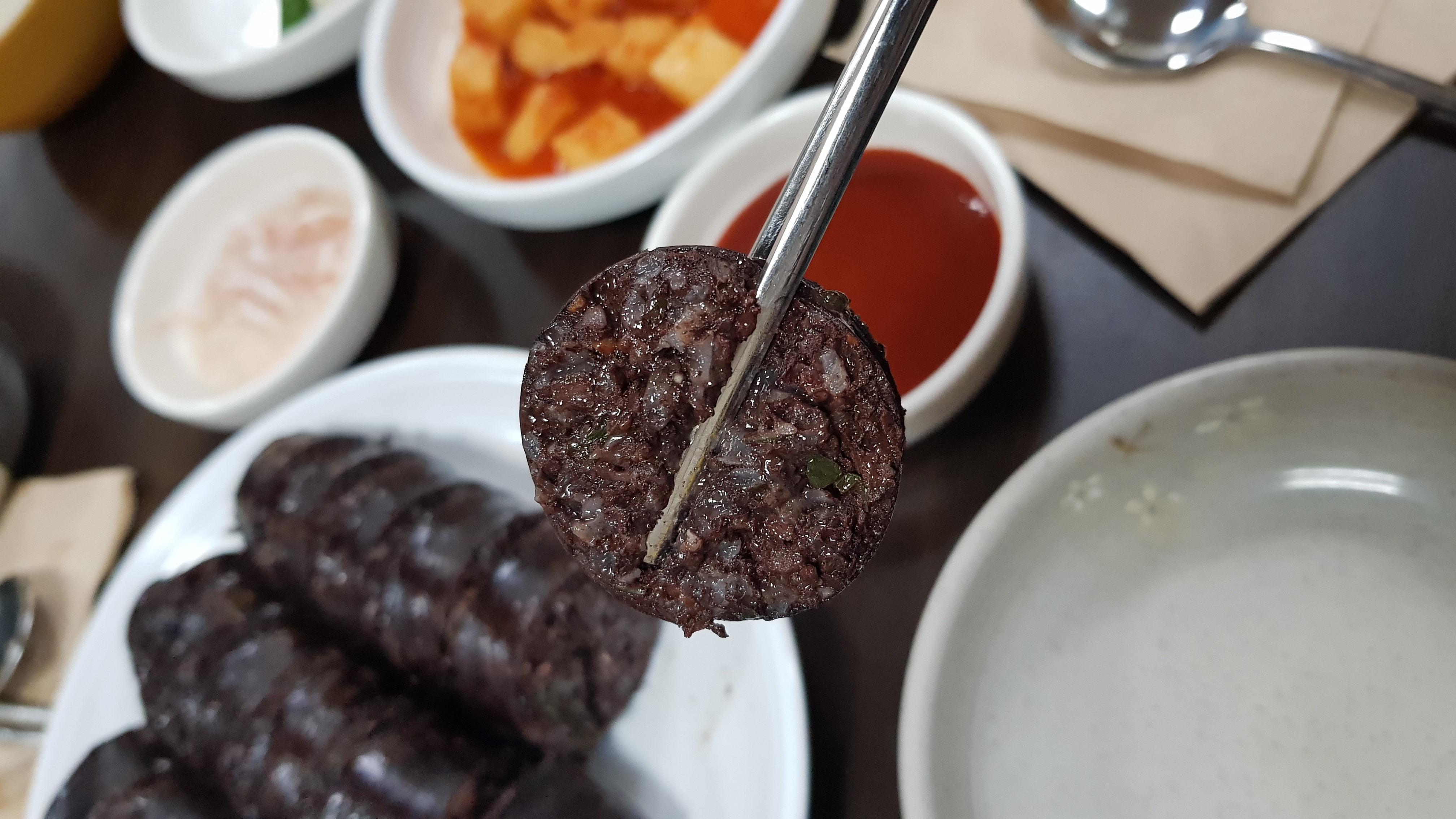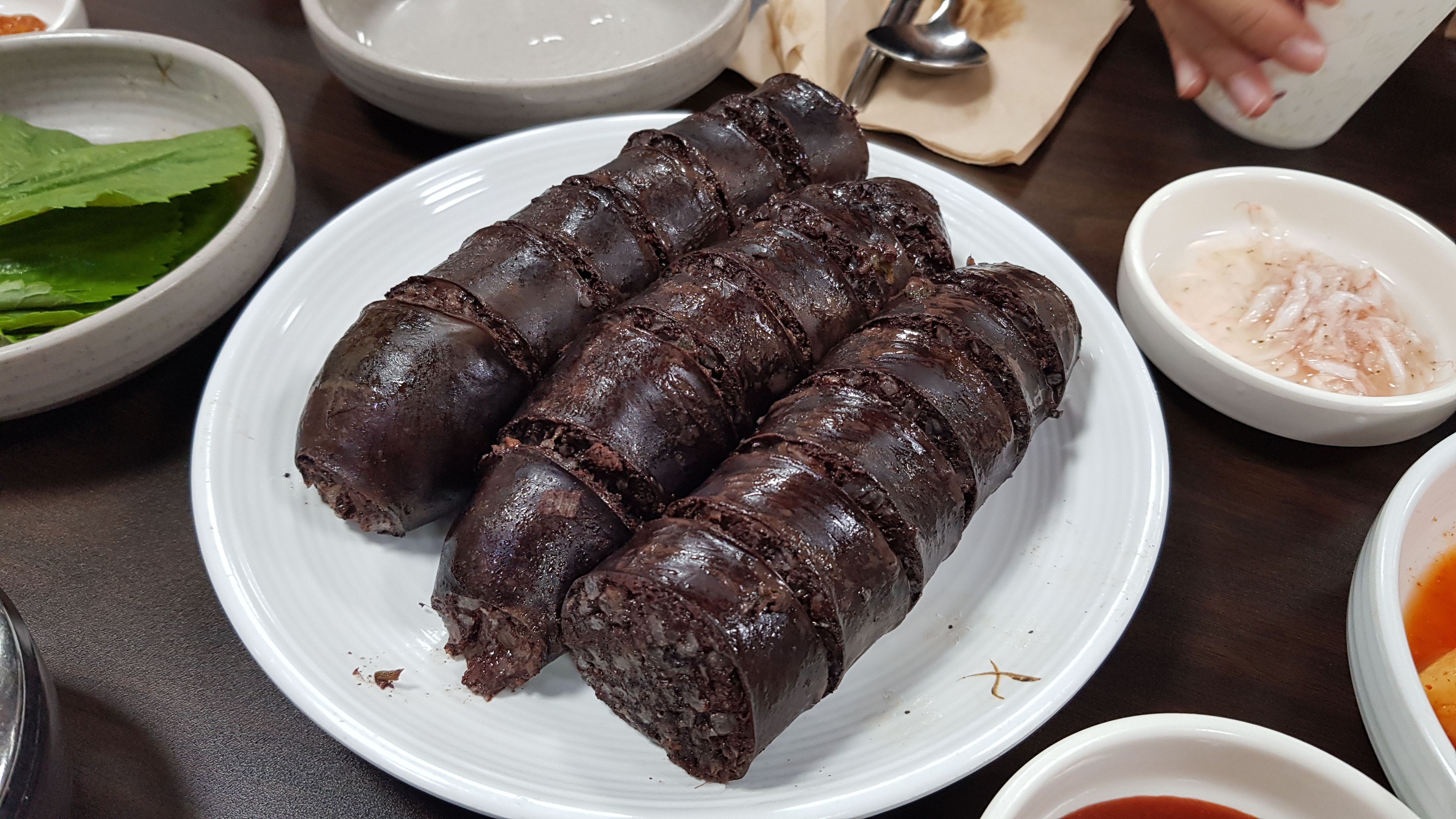 속이 꽉찬 피순대예요. 2~3개만 먹어도 배부를 것 같은데,