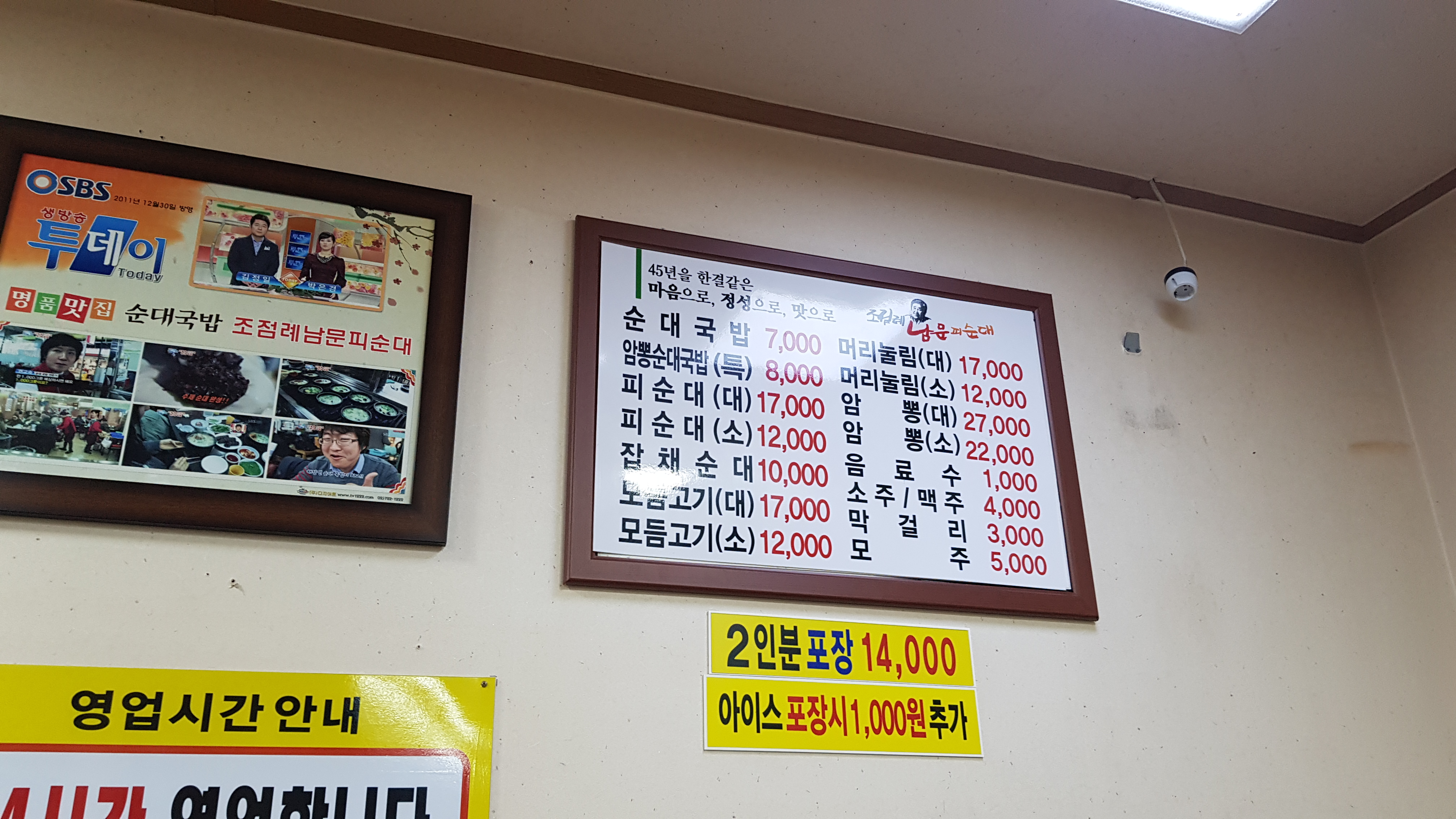 조점례남문피순대 메뉴판