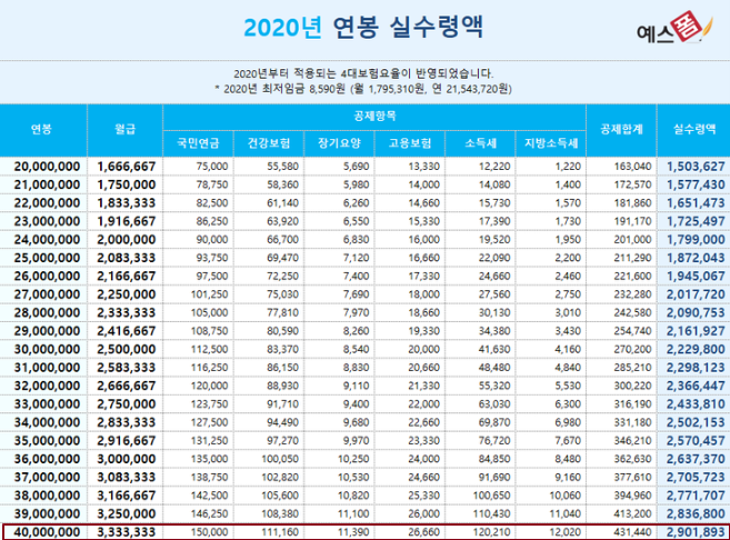 오늘은 연봉 4,000만원의 실수령액은 얼마인지 알아보고자 합니다.