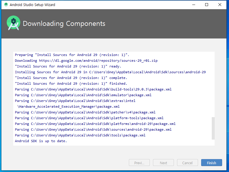 SDK까지 설치를 완료하면 아래와 같이 설치가 완료된 것을 확인할 수 있습니다.