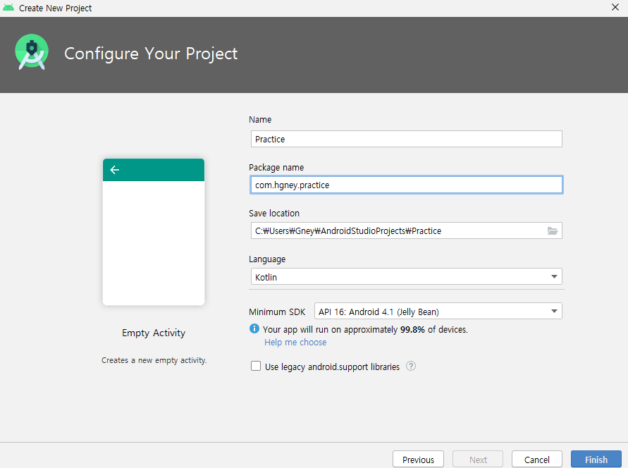 [안드로이드] 코틀린 안드로이드 프로젝트 생성 방법
