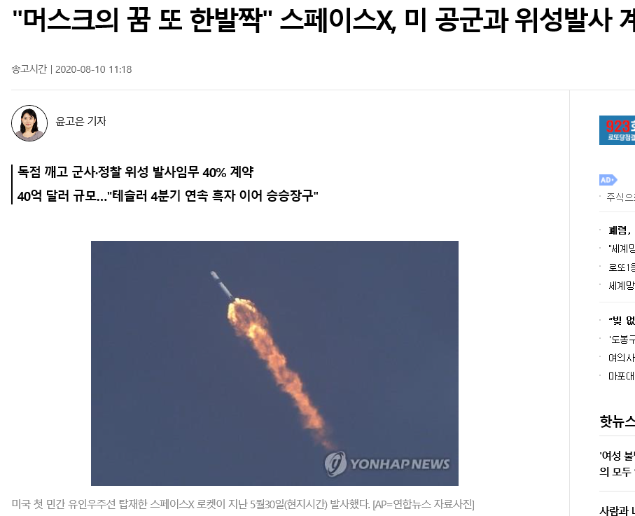 미 공군과 위성발사 계약을 한 스페이스X는 꿈을 위한 기업이 아닌,