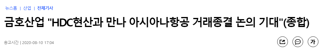 3. 금호산업 "현대산업개발과 만나 아시아나항공 거래종결 기대"