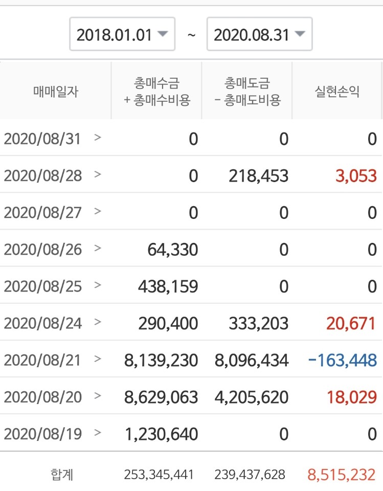 2020년 8월 소액주식투자. 140만원 이익실현
