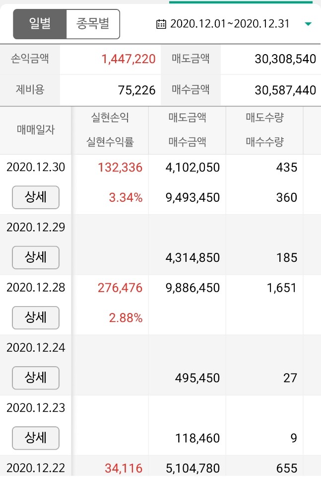 2020년 12월 국내주식투자 실현손익