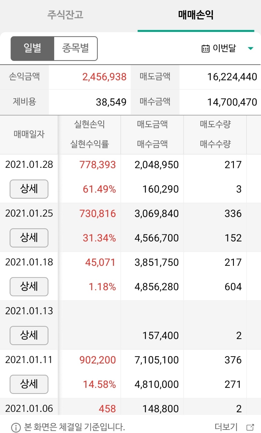 2021년 1월 주식실현수익 : +2,456,948원