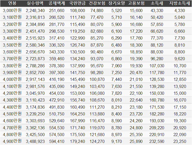 연봉 3000만원 이하 실수령액