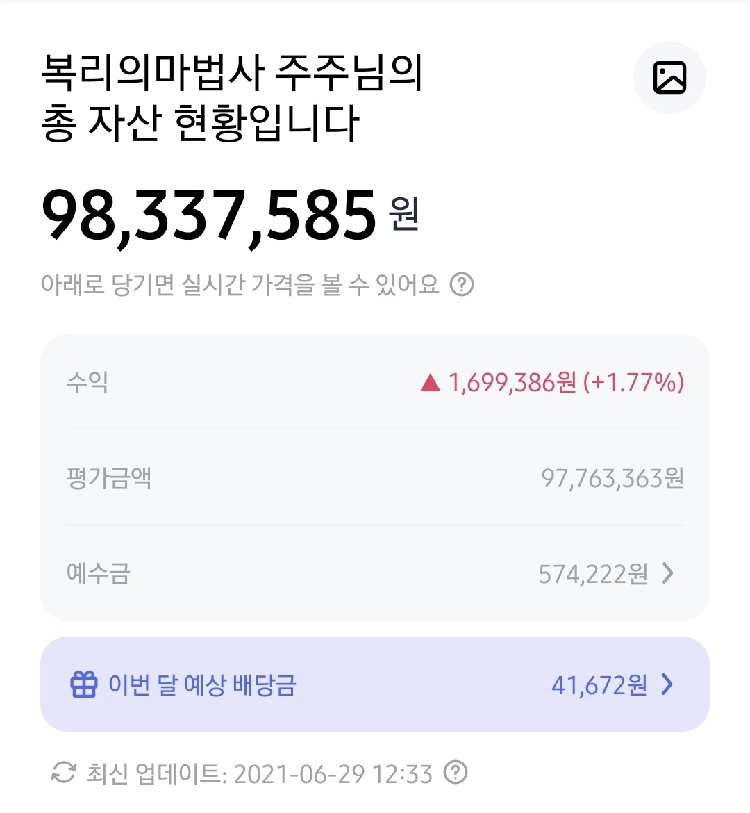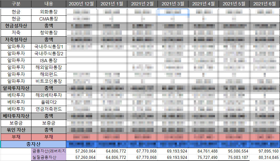 2021년 6월 복리의마법사 주식투자기록 금융자산현황