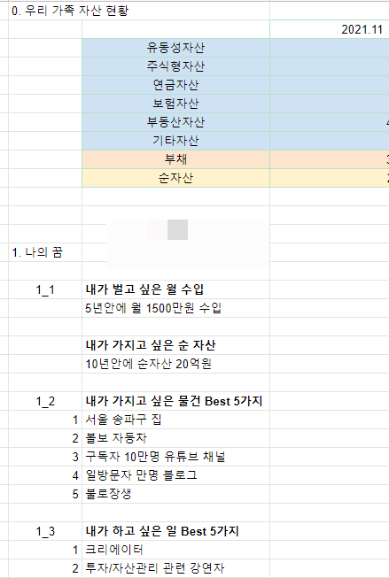 자산현황을 정리하였고 나의 꿈을 다시 정리하였다.