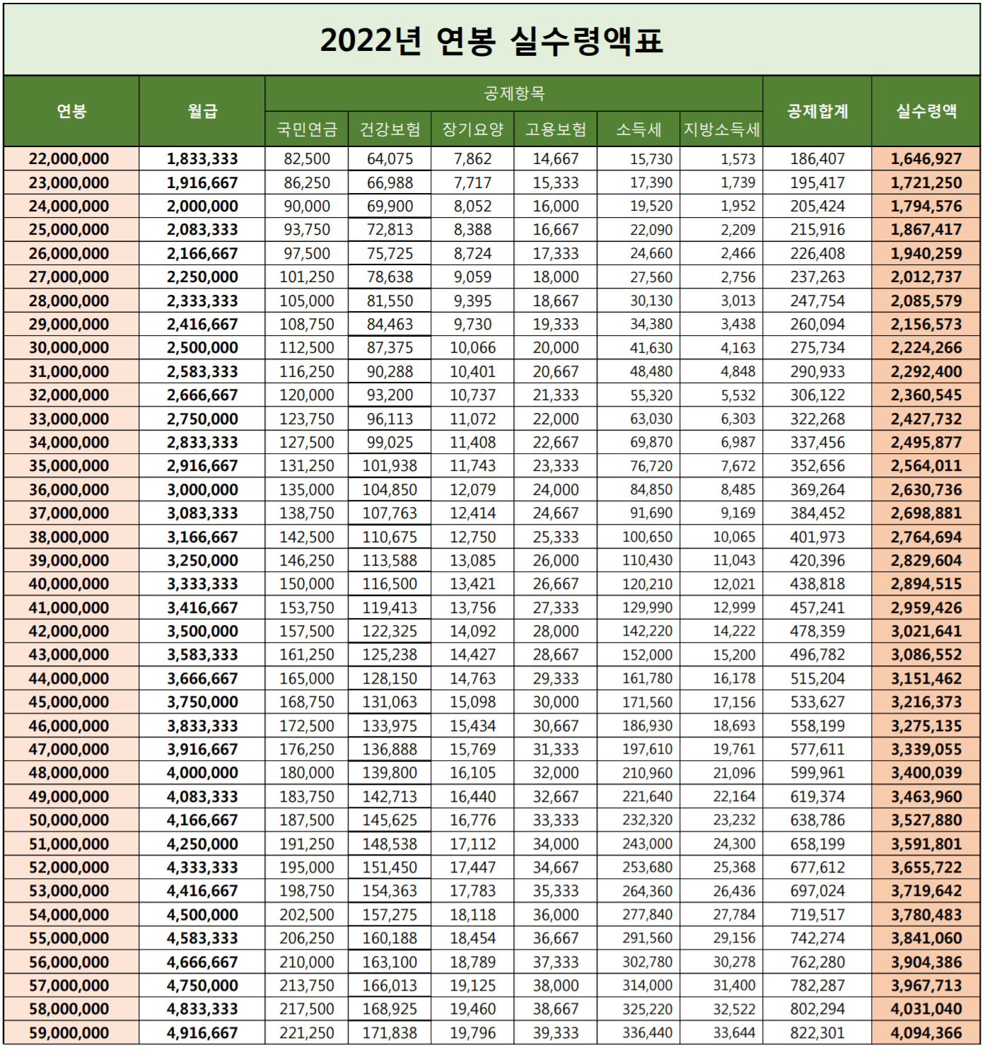 2022년 연봉 실수령액 표로 한 눈에 확인해봐요