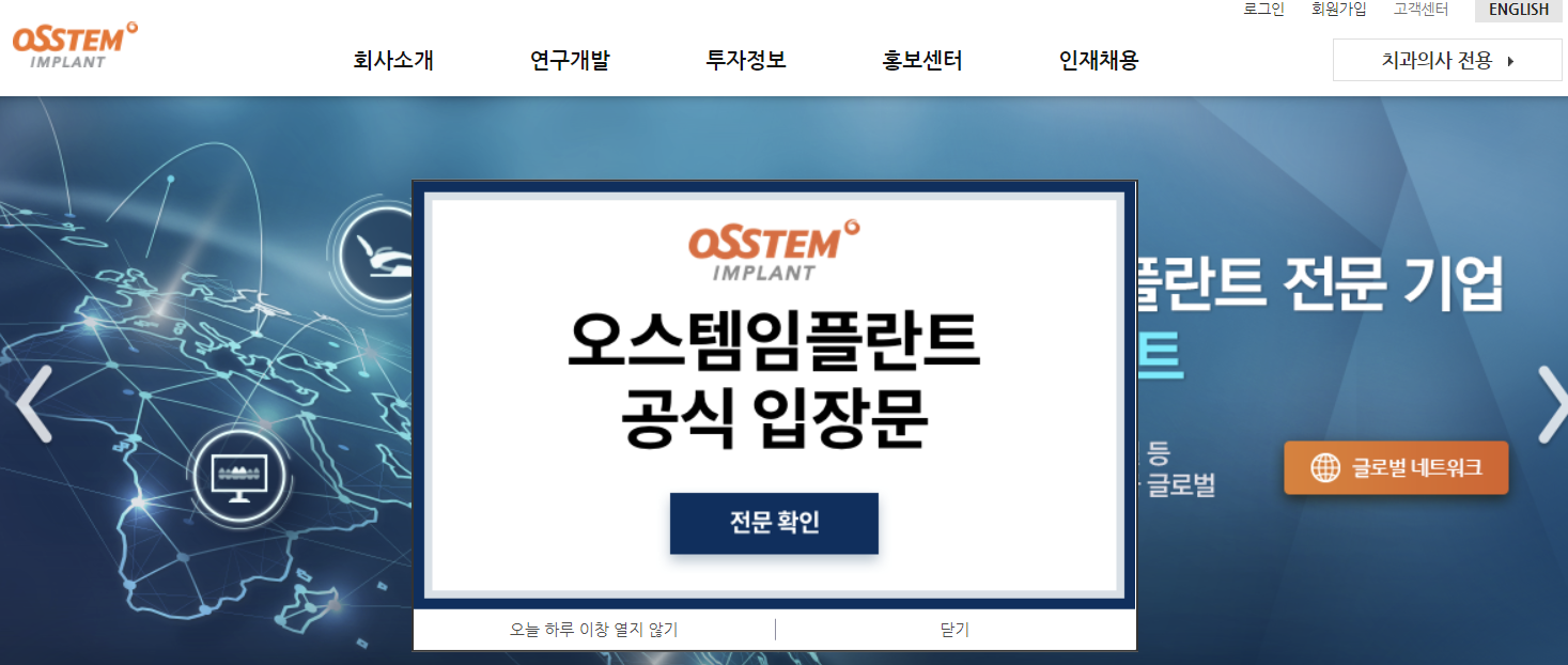 회사 명칭으로 알 수 있듯이 오스템임플란트는 임플란트를 주요 사업으로 하는 회사입니다.