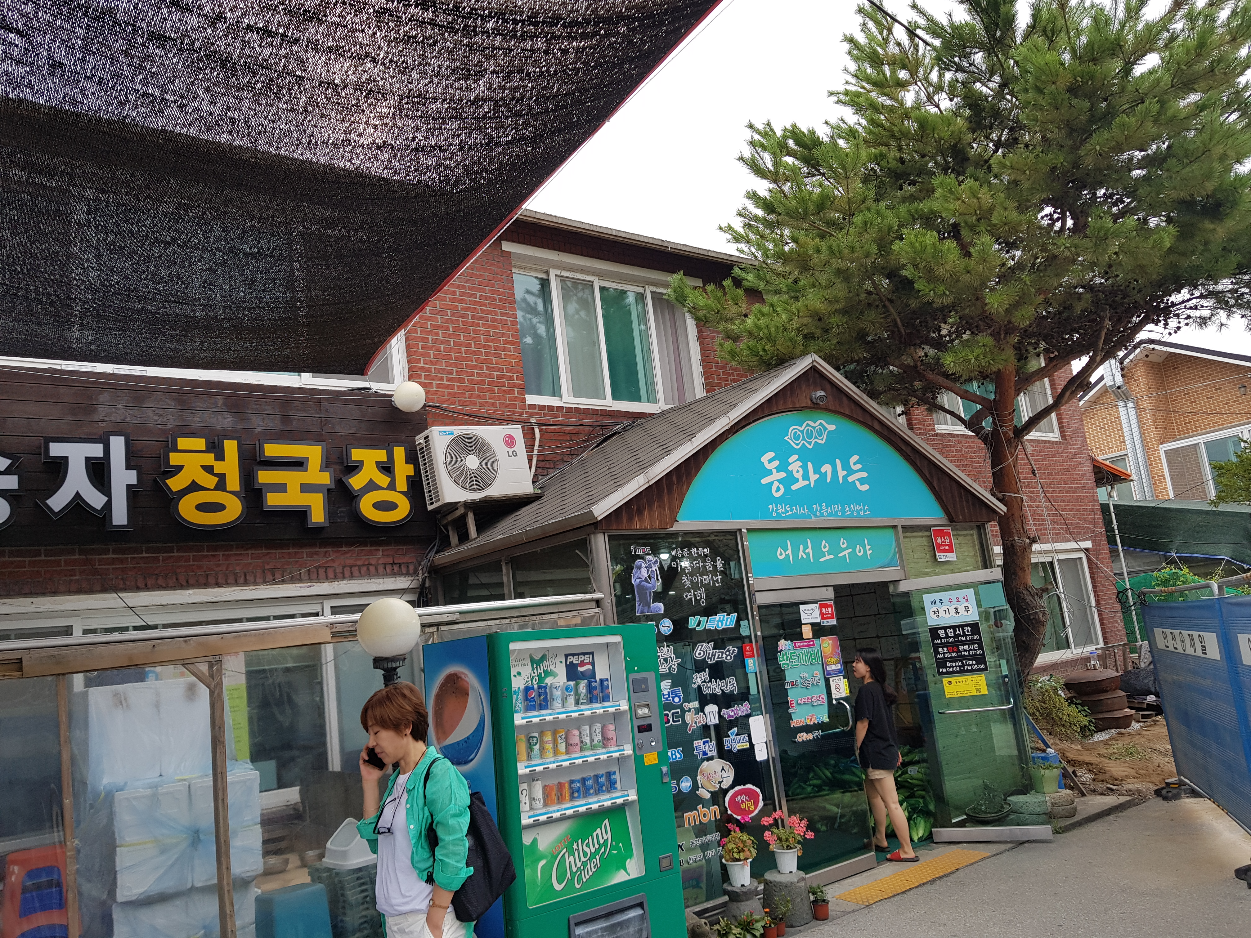 어서오우야~ 라는 간판과 함께 맞이해주는 동화가든이예요!