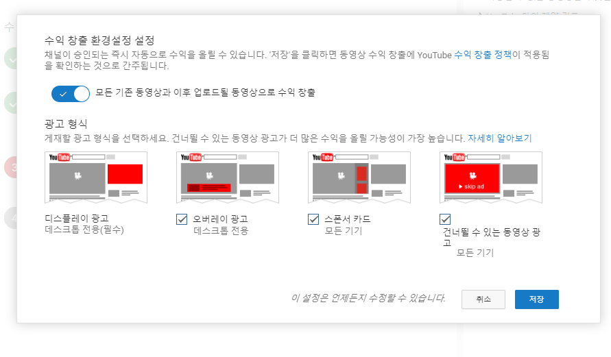 유튜브 구글 애드센스로 수익 창출 기능 활성화 하는 방법