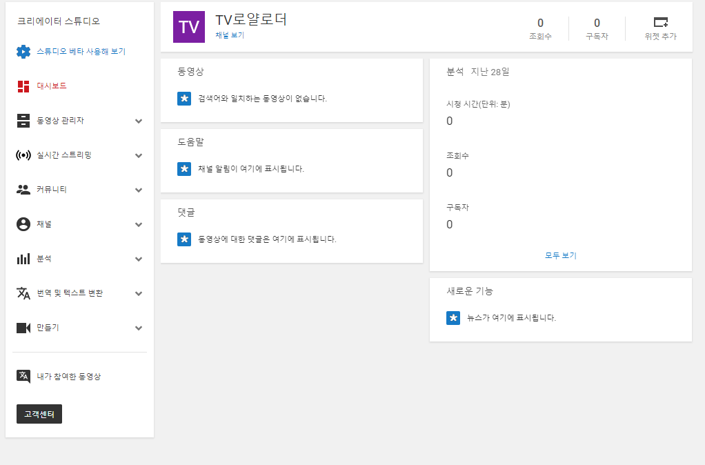 "크리에이터 스튜디오" 버튼을 클릭하면 대시보드를 확인할 수가 있어요.