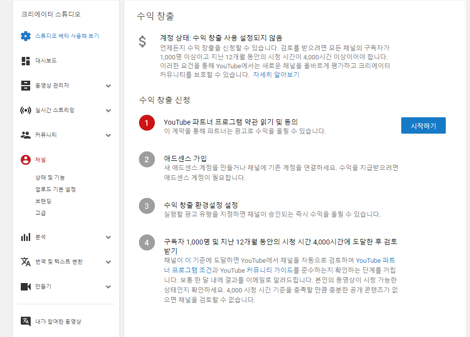 [유튜브 구글 애드센스로 수익 창출 기능 활성화 하는 방법]