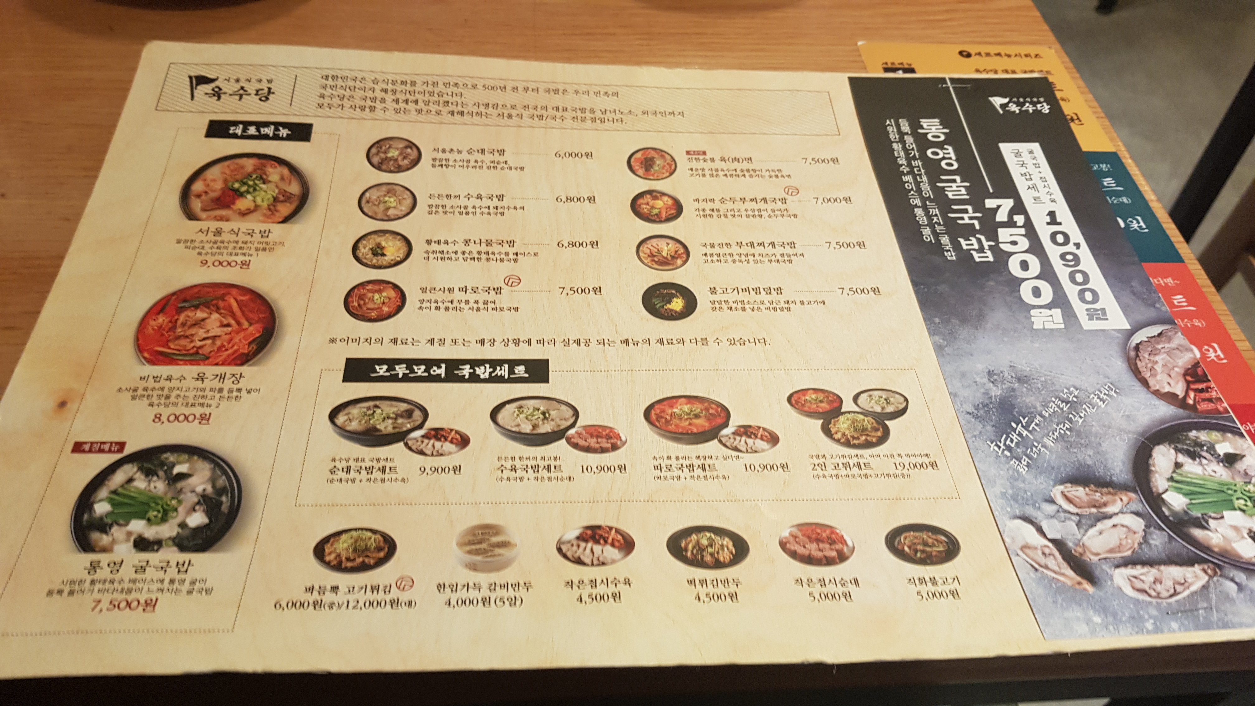 대표메뉴인 서울식국밥, 육개장 그리고 계절메뉴인 통영 굴국밥이 메인 음식이였는데요~