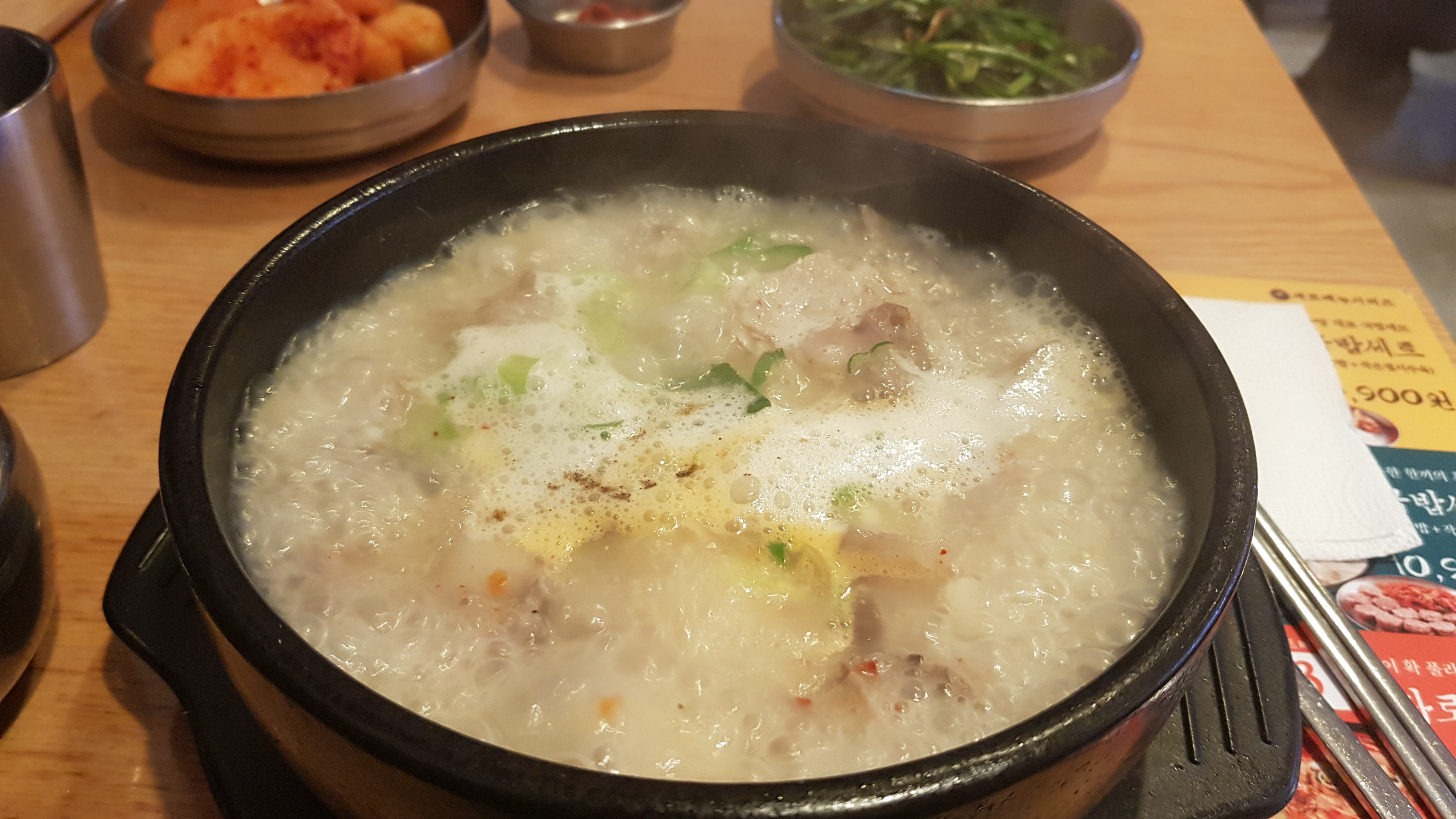 사골육수로 우려낸 진하면서도 깔끔한 국물이 고기와 완벽한 조화를 이루었었어요.