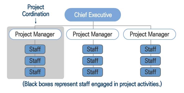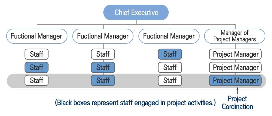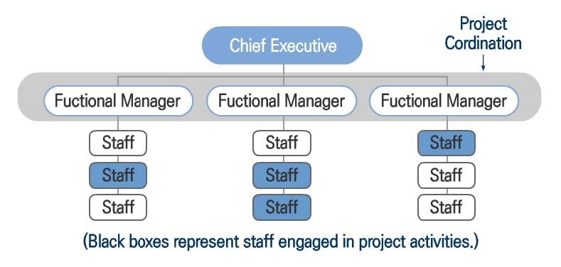 - 정보의 전파가 용이하고 프로젝트 완료 후, 돌아갈 조직에 대해 정해짐